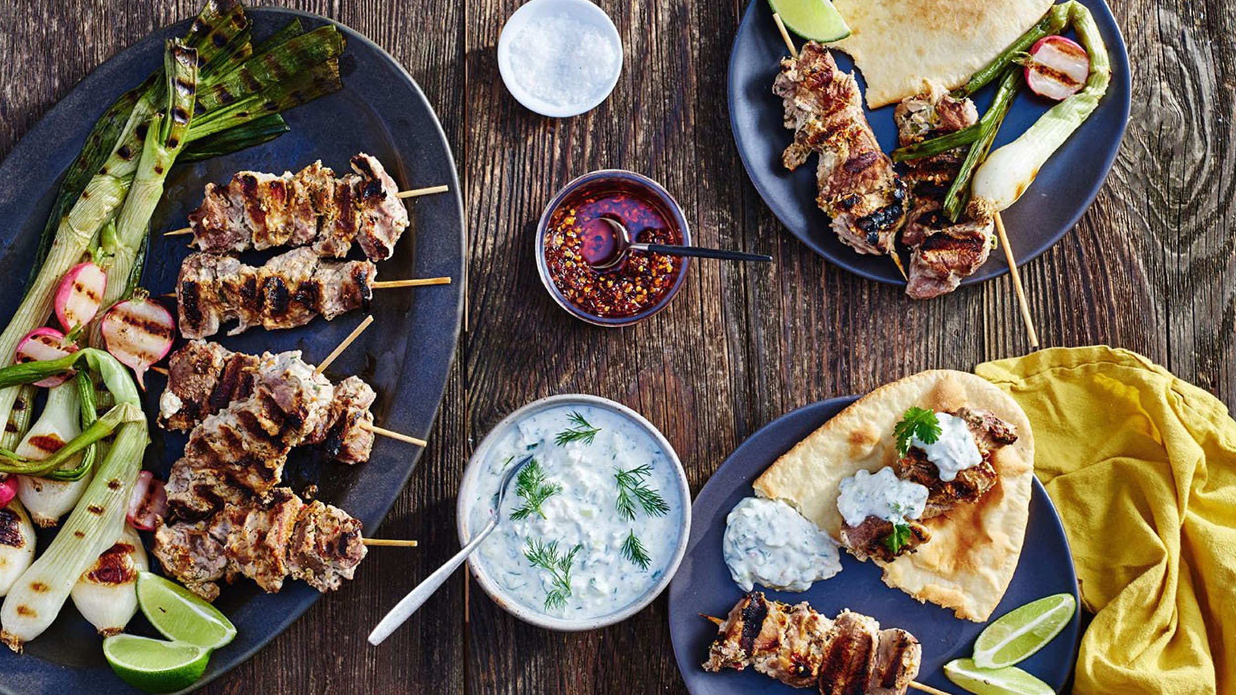 Tender lamb and veggies are skewered and grilled to perfection, then served with a creamy Tillamook Greek yogurt, cucumber, and dill sauce. Enjoy this easy-to-make recipe.