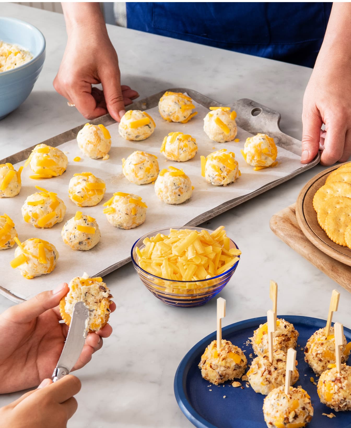 These mini cheese balls are the perfect holiday appetizer! Made with Tillamook Sharp Cheddar, pears, and rosemary, they are sure to be a hit at your next gathering.