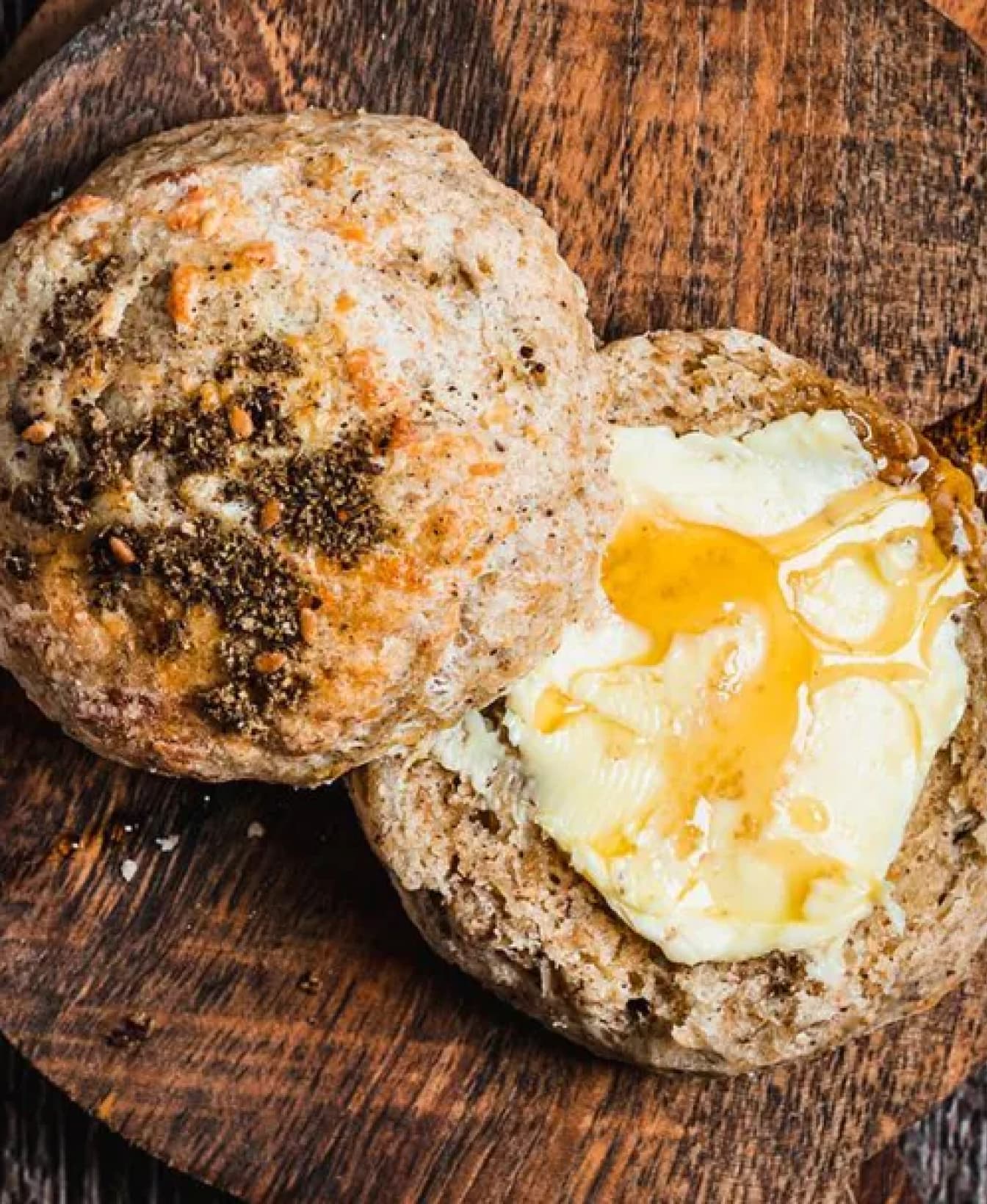 Bake the scones until they are lightly golden on top and medium golden on the bottom, about 20 minutes. Enjoy with softened butter and honey!