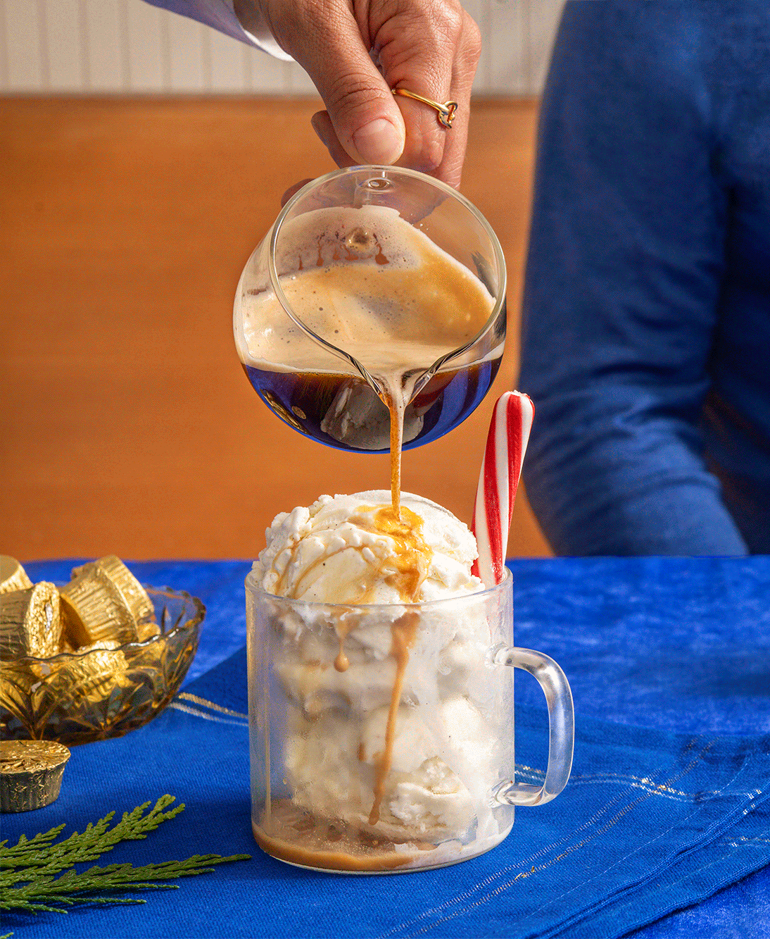 Treat yourself to a delightfully rich (and easy-to-make) dessert combining Tillamook Extra Creamy Ice Cream topped with freshly brewed espresso.