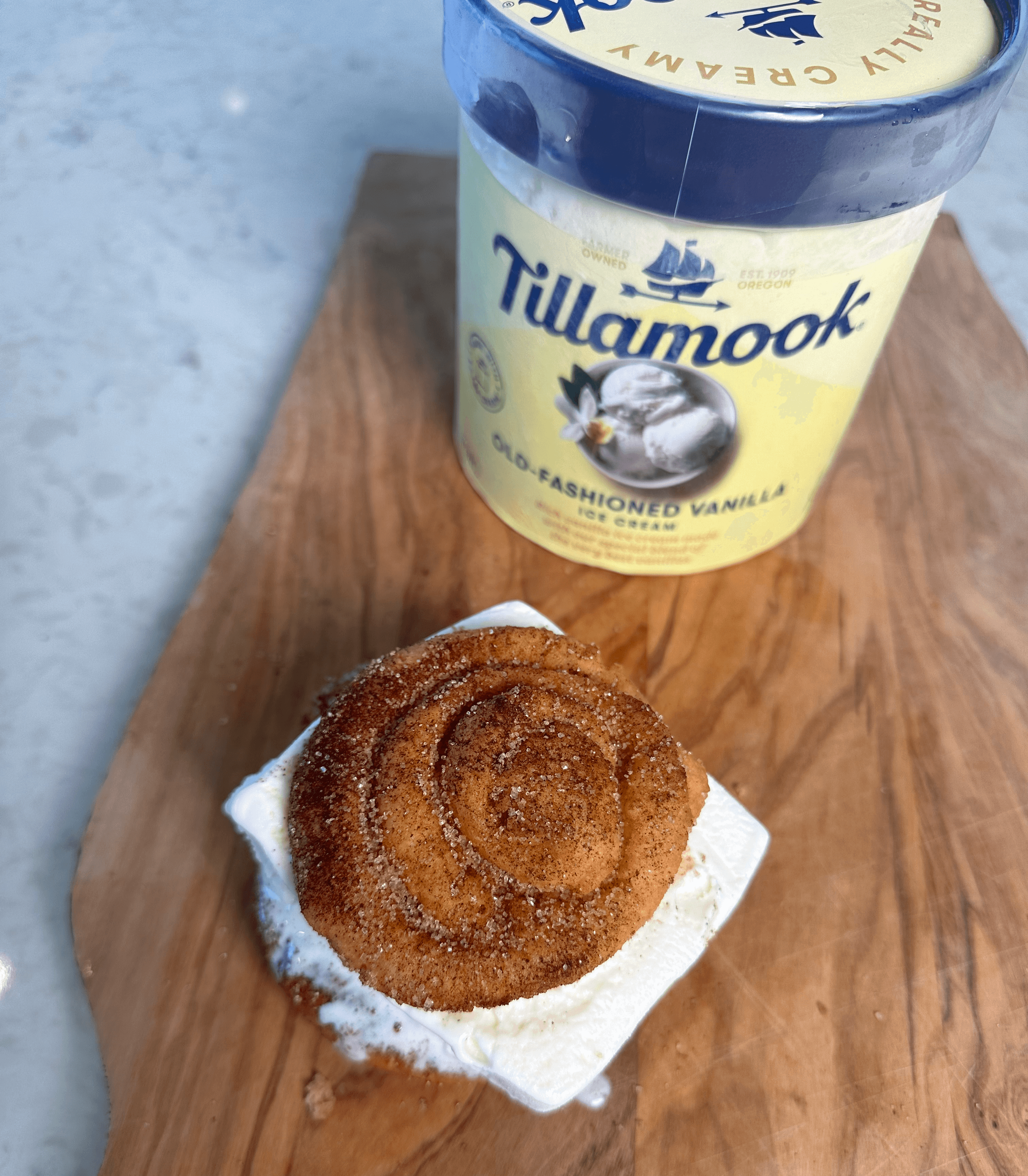 TIP: For a camera-ready slice of Tillamook Ice Cream for your sandwich, cut directly through the container itself with a sharp knife slicing off your desired thickness in ice cream.