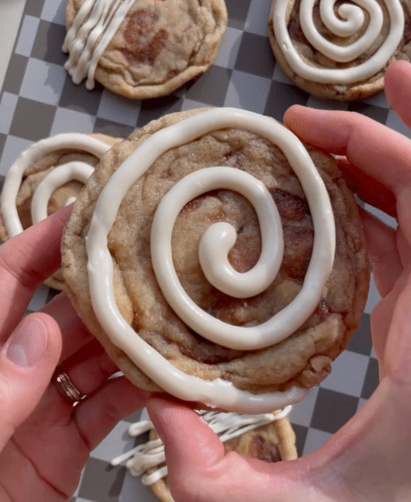 A soft snickerdoodle swirled with buttery brown sugar cinnamon pockets and topped with cream cheese frosting, these cookies are a sweet hit for any occasion.