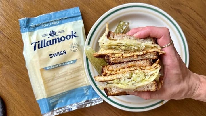 TIP: To take your sandwich to the next level, use a nonstick pan and place a Tillamook Swiss Cheese Slice directly on the pan. Add your sandwich on top of the cheese and cook for 3-4 minutes or until the cheese is caramelized and crispy.